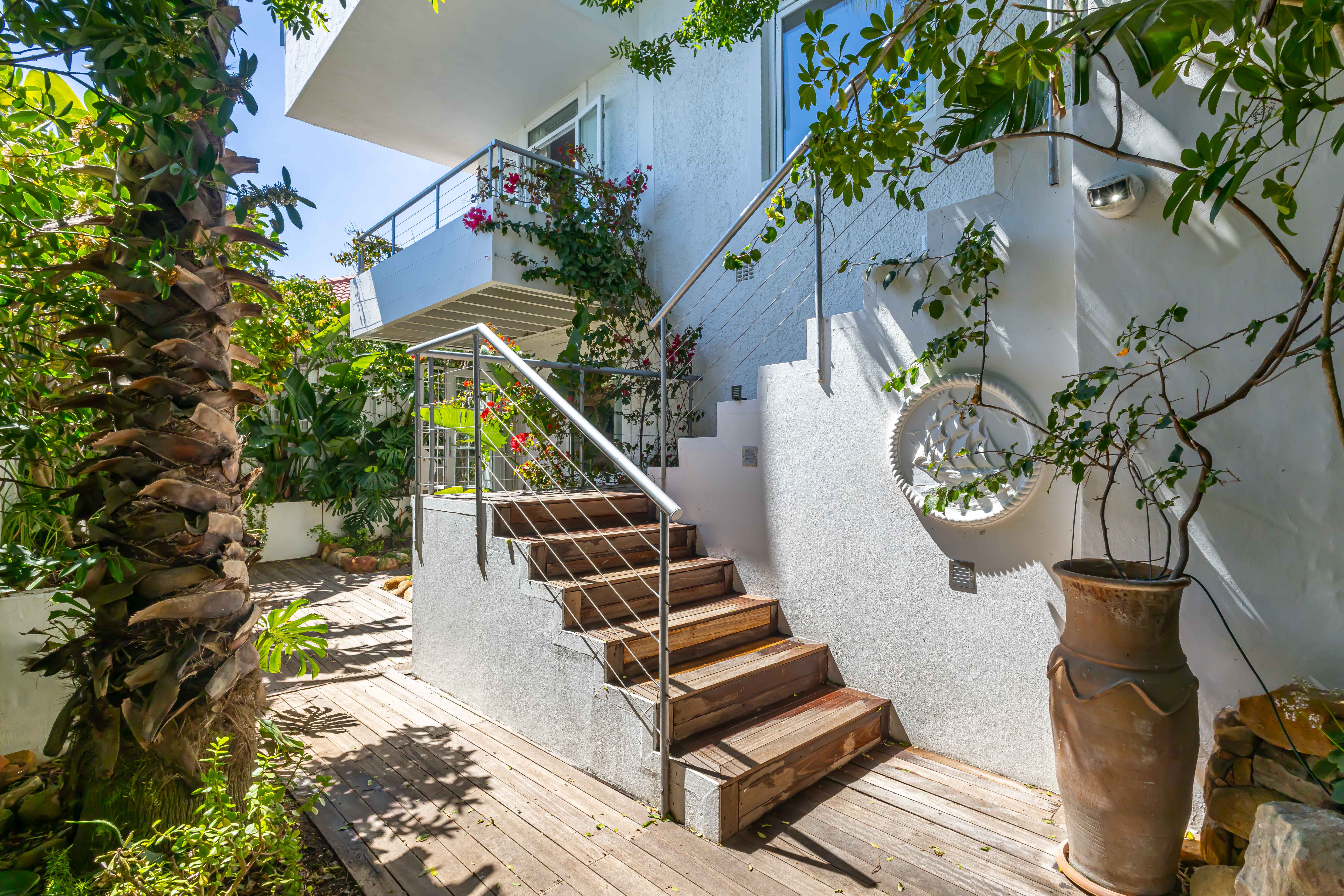 A tranquil rear courtyard with water feature — peaceful and perfect for a morning coffee