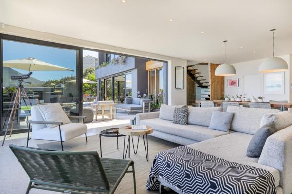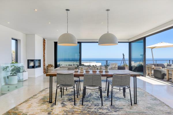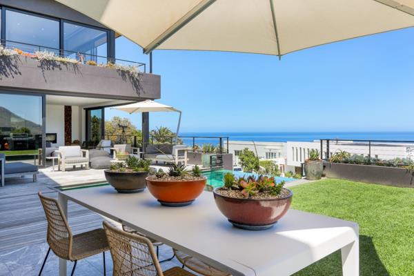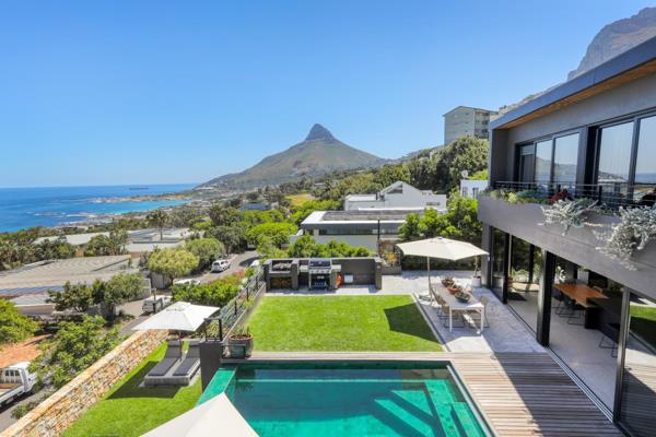 Extra high ceilings throughout provide a wonderful spacious open living home, allowing easy movement between social and private family areas while enhancing the natural flow onto the north facing pool patio and lower garden. Uninterrupted panoramic sea views are complimented with Lions Head and Twelve Apostles backdrops. The property design provides the flexibility to be your luxury villa for fun in the sun, or an amazing family home to kick back and relax. Built using the very best of green architecture, this property has a borehole for garden, pool and toilet water use. Additional 20 000L water tanks capture rain water linked to two dedicated water filtration systems ensuring all water is crystal clear and safe for drinking. A lithium ion battery system and invertor ensure no load shedding with uninterrupted off the grid power in excess of 8 hours concurrently.