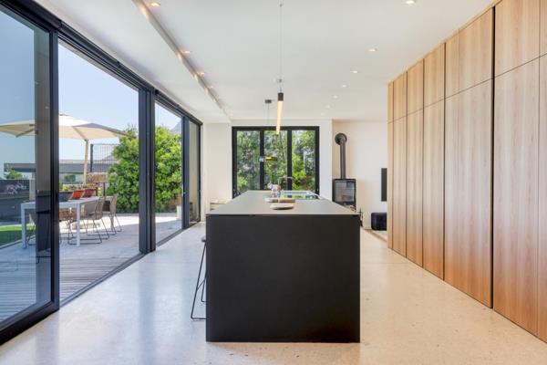 A beautiful mix of natural elements brings together Table Mountain sandstone, wood, glass, steel and an indigenous garden to create this magnificent property in the heart of Bakoven. Designed by leading Canadian architect Julian Robillard, this recently built home is an entertainers dream with multiple inside / outside areas that consider natural light, wind direction and breath taking sunsets all year round.