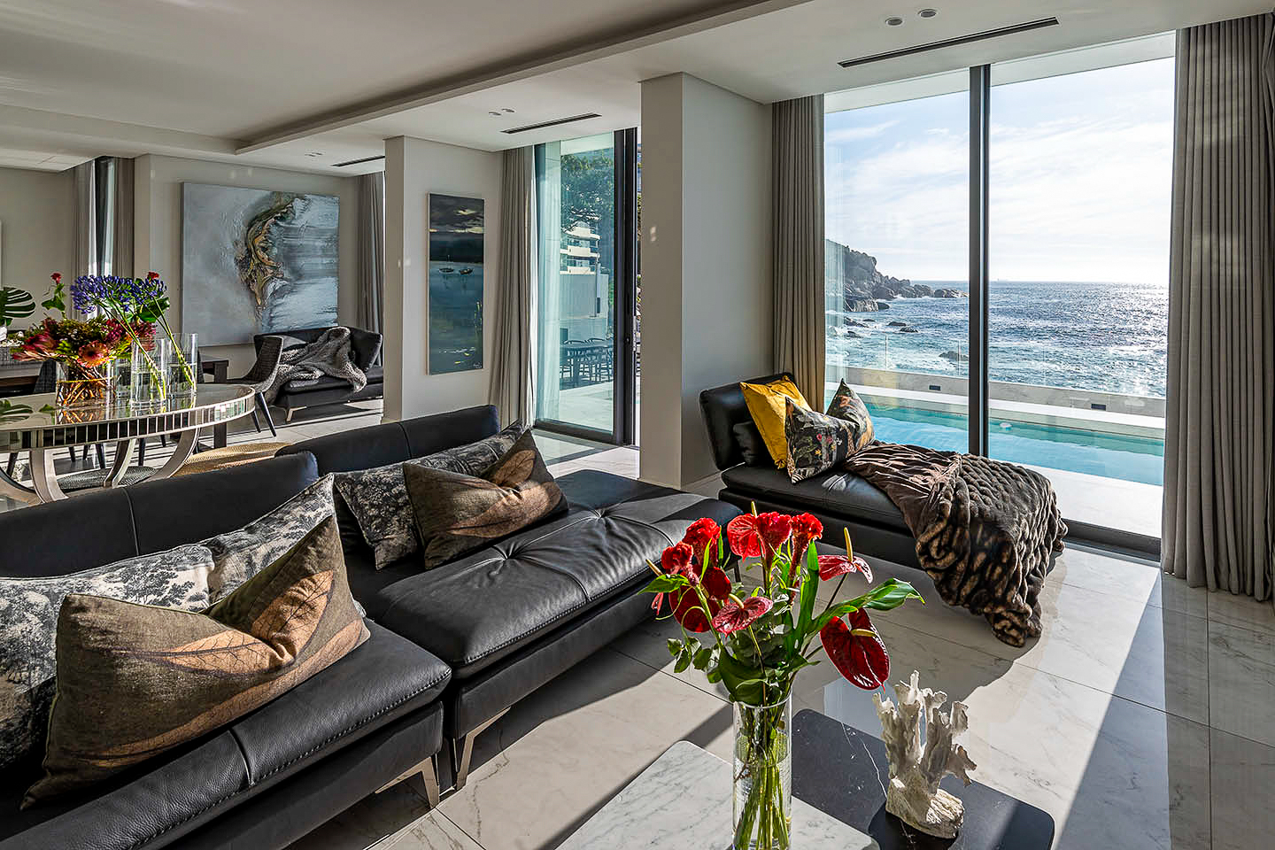 Step outside to the spacious balcony, where a gas barbecue, private pool, and cozy loungers await. Soak in breathtaking, uninterrupted sunsets while listening to the calming sound of waves crashing against the rocks.
