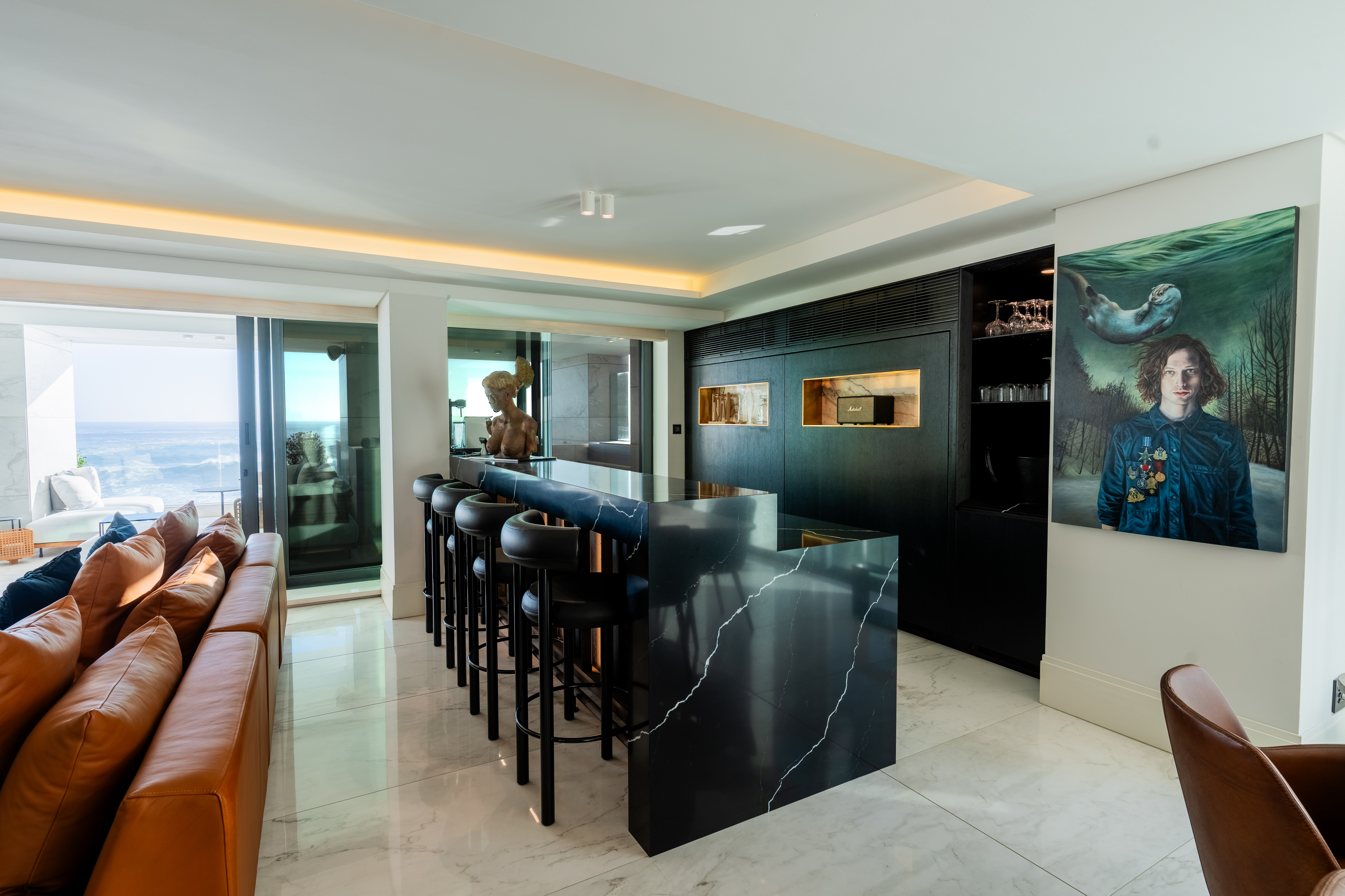 The balcony is equipped with a gas barbeque, splash pool, and comfortable loungers to watch a magnificent uninterrupted sunset whilst listening to the sound of the waves breaking over th