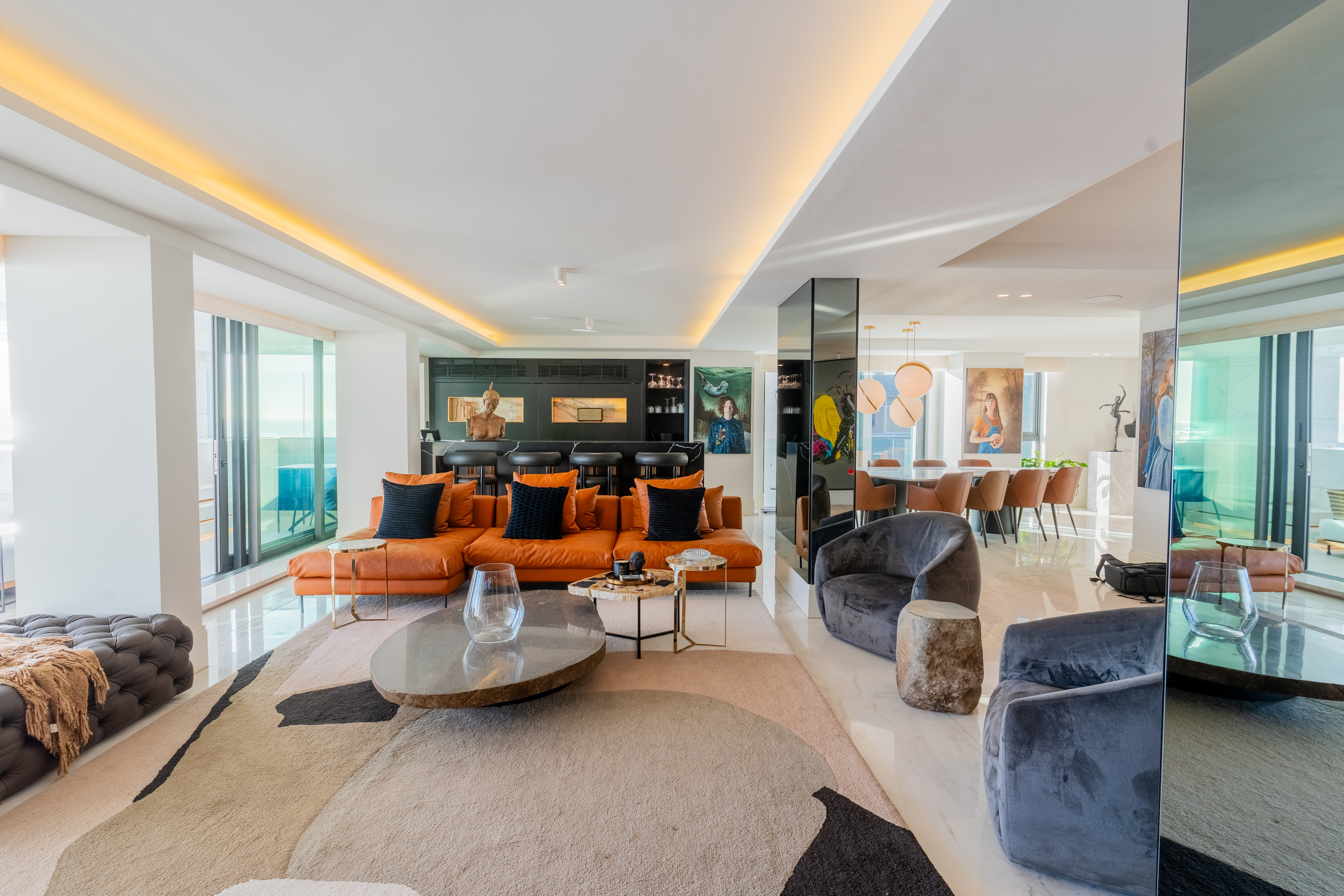 The Sea-Side Aurum 501 apartment in Aurum Presidential Suites offers luxurious accommodation in a spacious 4 bedroom apartment. This upmarket sought-after, state-of-the-art apartment features high-end finishes and modern amenities, including a fully-equipped gourmet kitchen, plush furnishings, and a private balcony, splash pool, and stunning views.