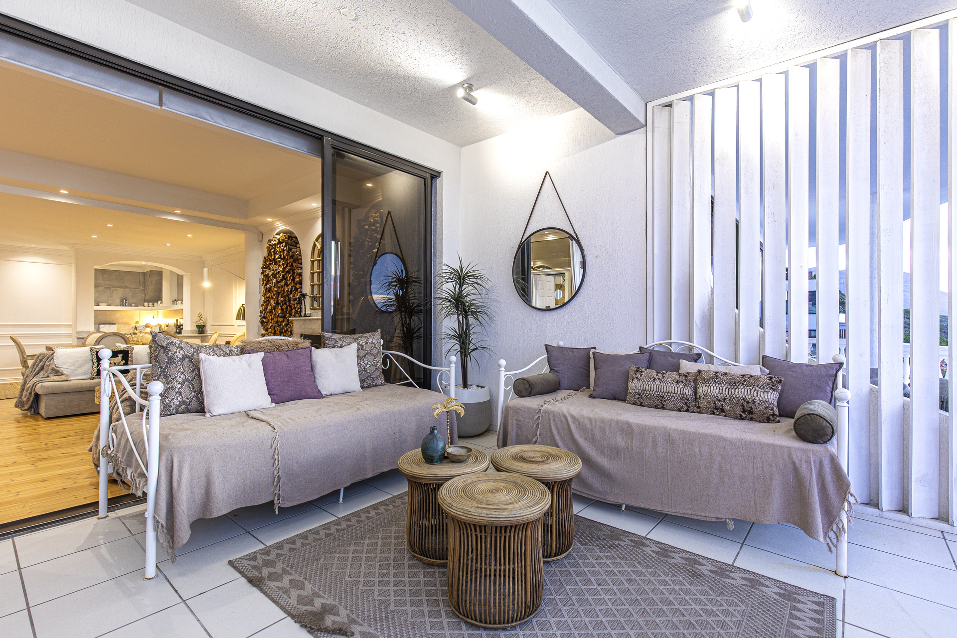 The leisure area boasts floor-to-ceiling mirrors, a stunning twin-arched firewood display, and a Victorian cast-iron fireplace, crowned by an elevated hot tub with breathtaking ocean views. Outside, the sweeping curved terrace offers uninterrupted vistas of the Atlantic Ocean and The Twelve Apostles Mountain Range, perfectly complementing the sleek, modern interior.