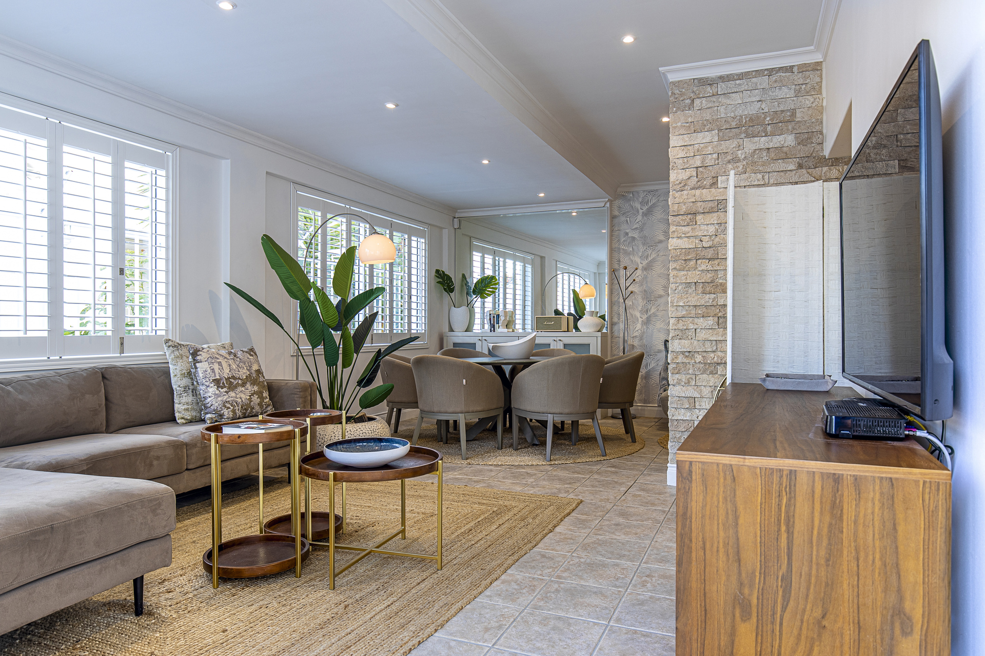 Bask in the ambiance created by large mirrors framing the lounge area, anchored by a striking fireplace. Step outside to the expansive outdoor space, complete with a fire pit, lounge, and dining area. Here, the chic exterior complements the immaculate interior, offering breathtaking views of the ocean merging with the iconic Twelve Apostles Mountain Range.