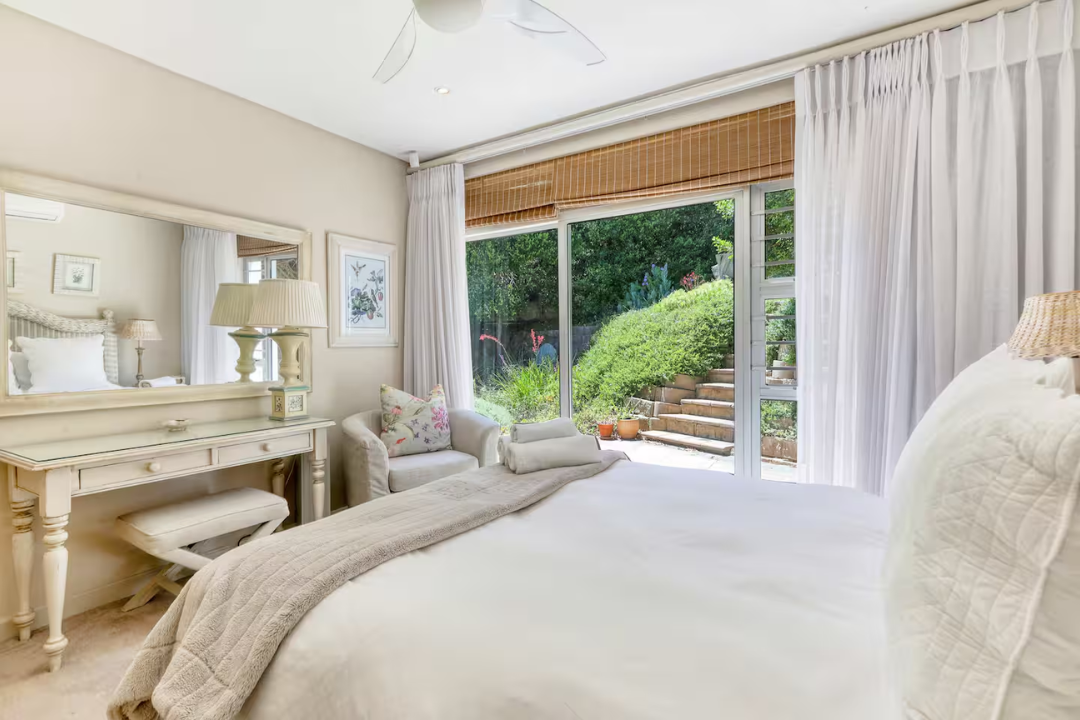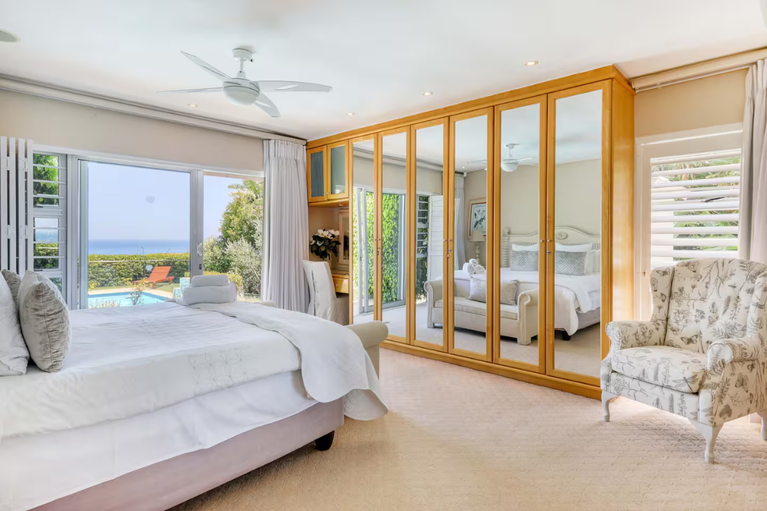 The four bedrooms are tastefully decorated with calming tones and ocean or garden views:
