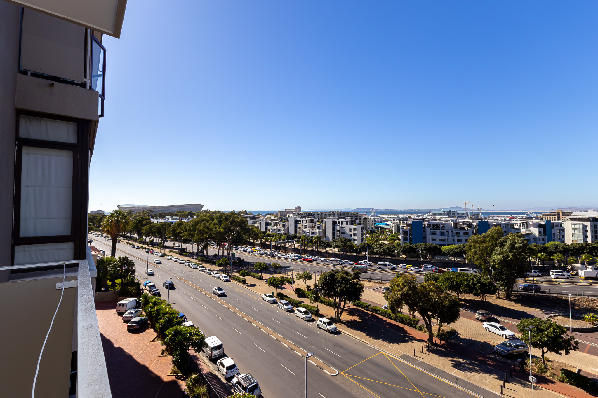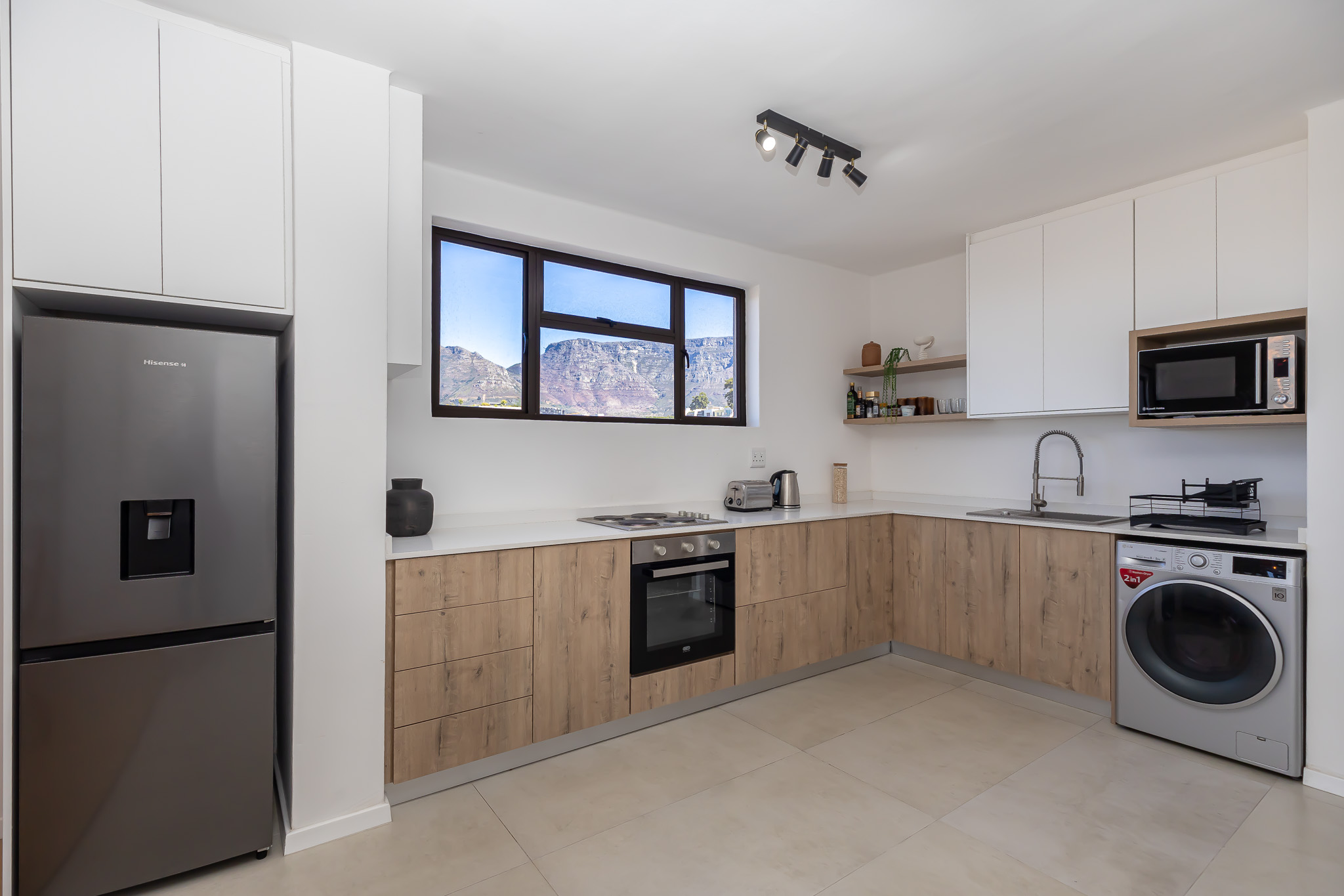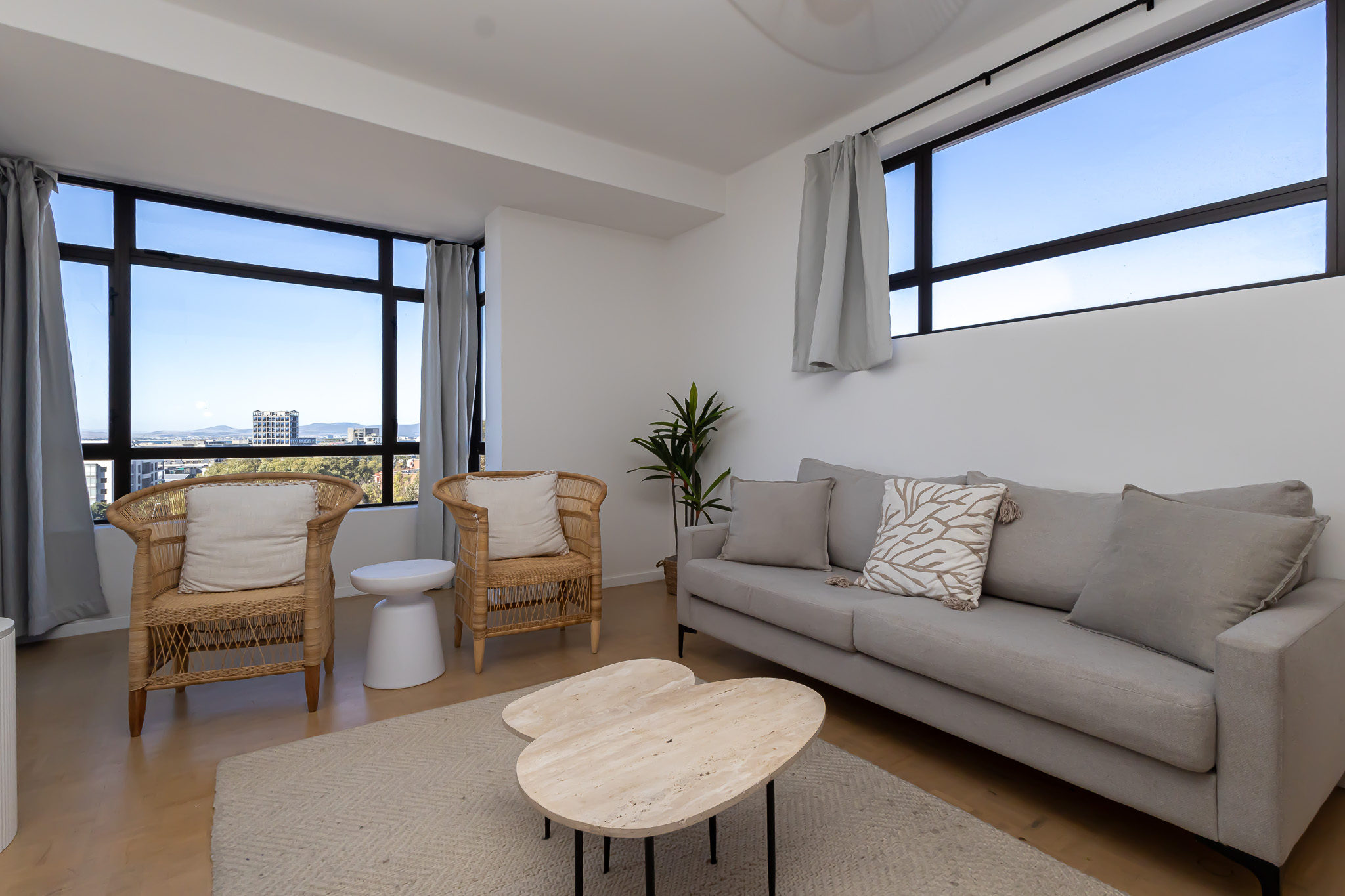 Modern, stylish, and perfectly located: This renovated apartment offers views of Table Mountain, the stadium, and the sea.