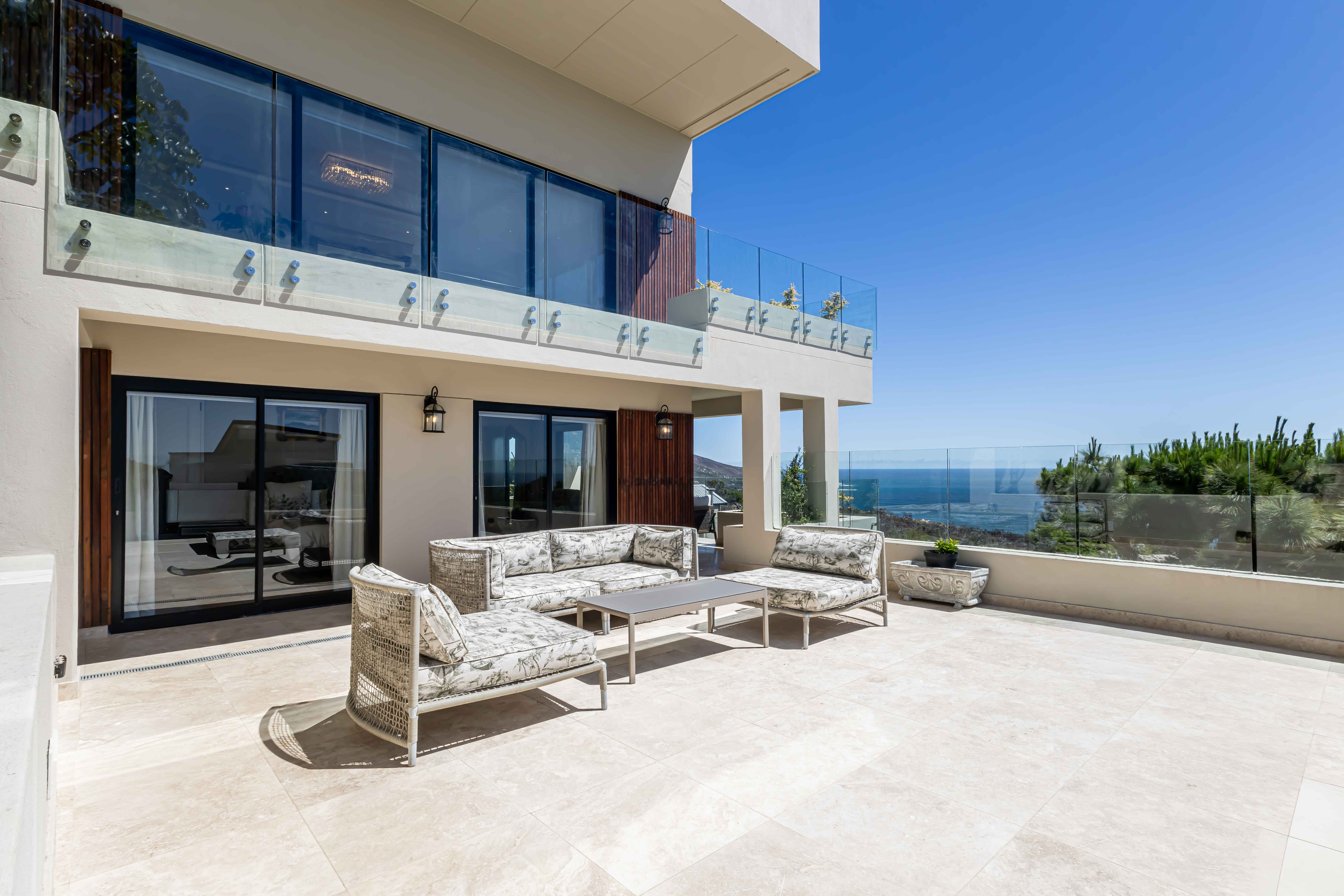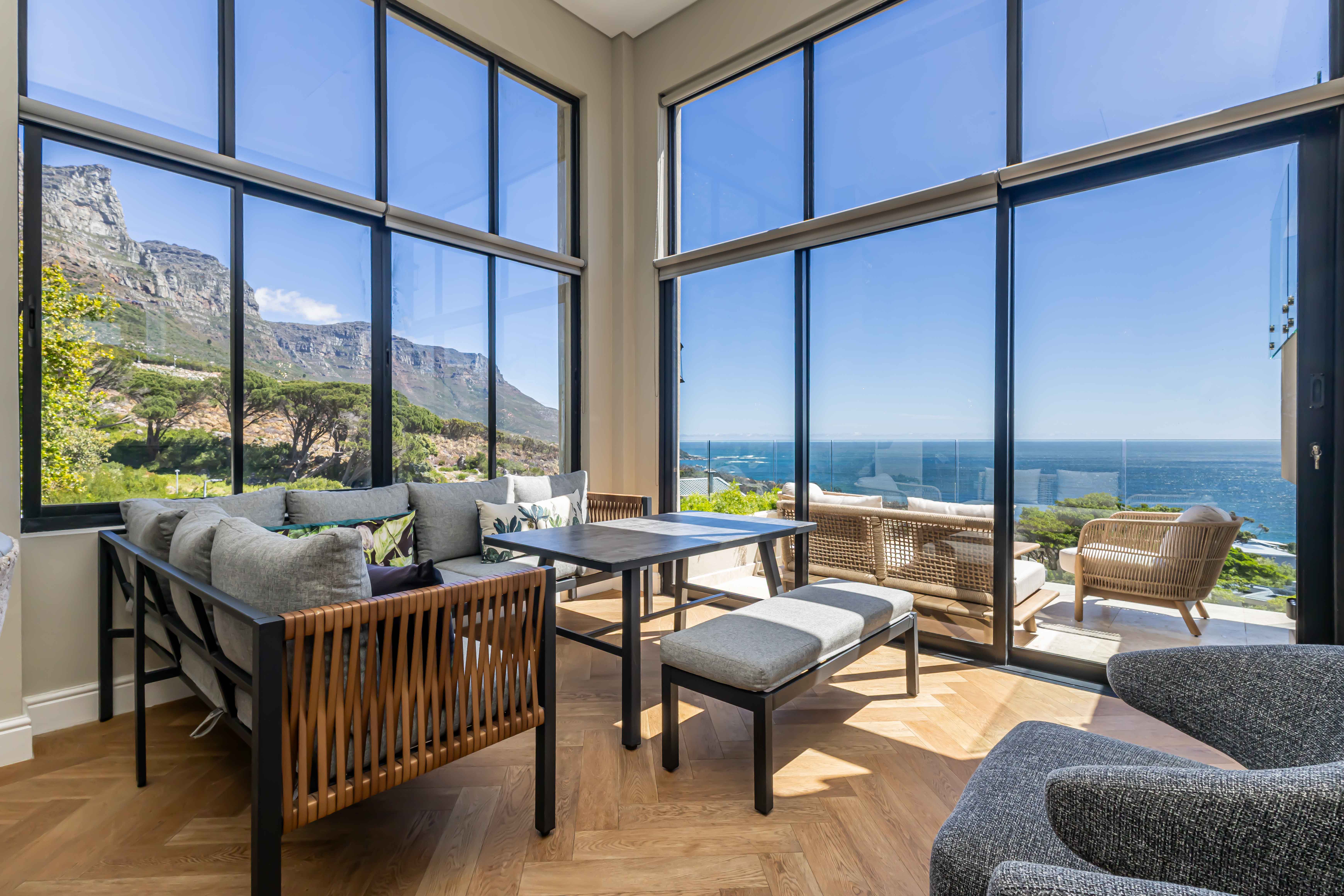 Set high on the slopes of Camps Bay, Château de Lumière is a radiant 4-bedroom retreat that captures the essence of refined coastal living. Bathed in natural light with panoramic views of the Atlantic Ocean and Table Mountain, this exclusive home pairs elegant interiors with spacious outdoor living — ideal for families or small groups looking for a serene Cape Town getaway.