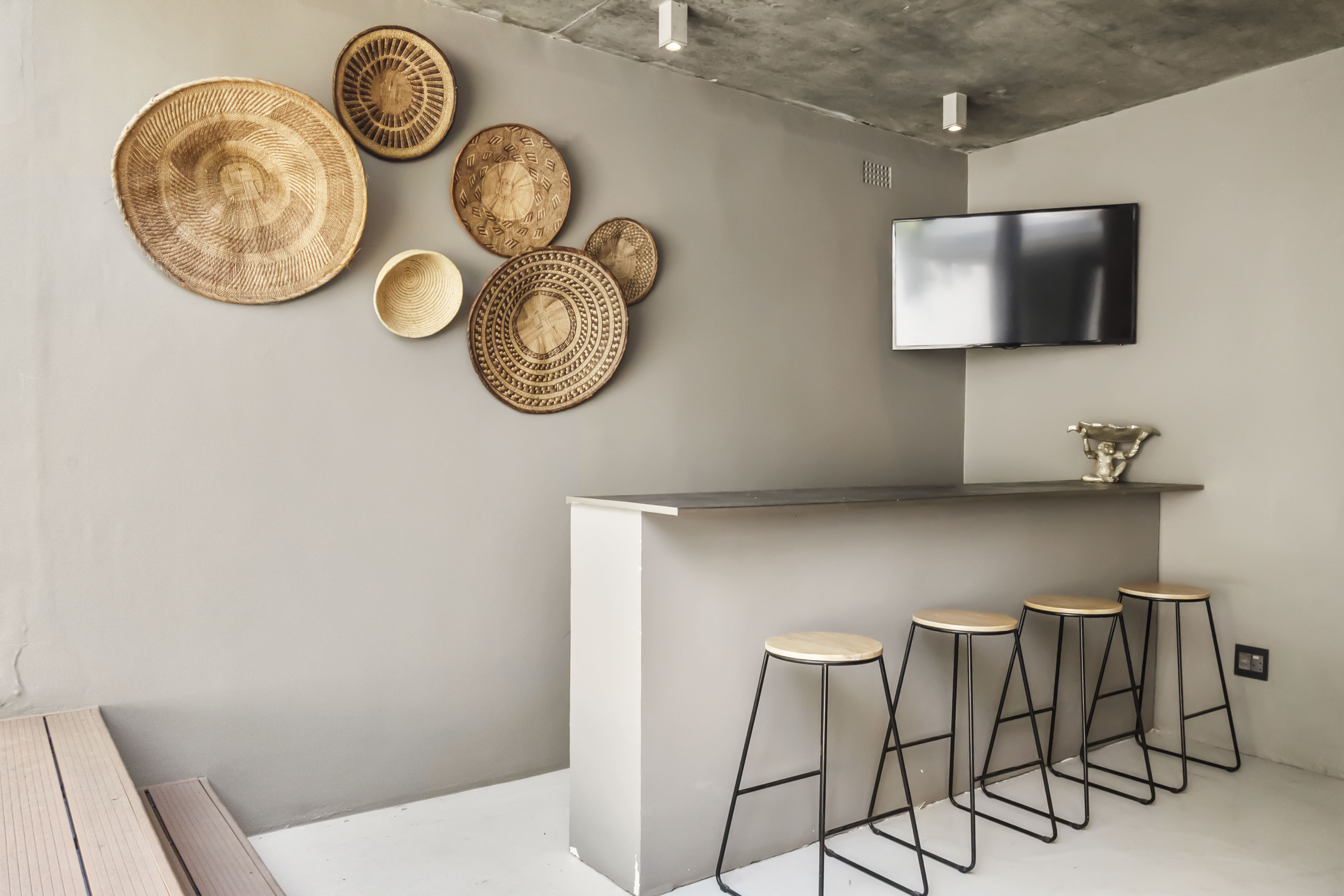 Highlights include a heated pool, barbecue area, bar, fully equipped kitchen, and kid-friendly features like a trampoline and zipline. The stylish décor features exposed concrete roofing, screeded and wooden floors, and high ceilings, creating a vibrant yet relaxed atmosphere. An extra en-suite bedroom with a private entrance is available for added flexibility.