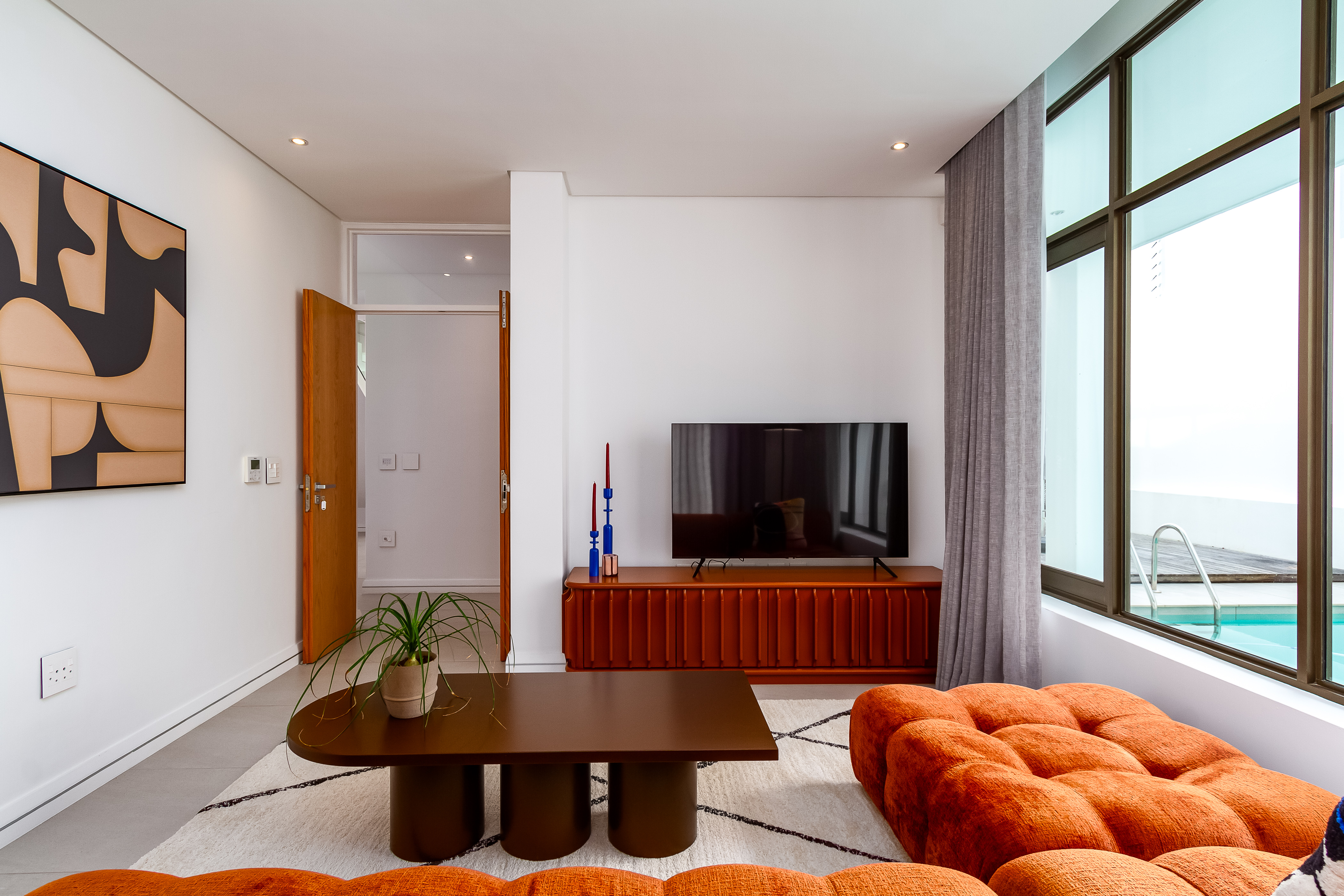 Experience the epitome of luxury in this contemporary villa, perfectly situated in Camps Bay, offering breathtaking ocean and uninterrupted mountain views from every level. Just a 5-minute stroll from the beach, vibrant promenade, and renowned restaurants, this bright and spacious home is ideal for sunset lovers.