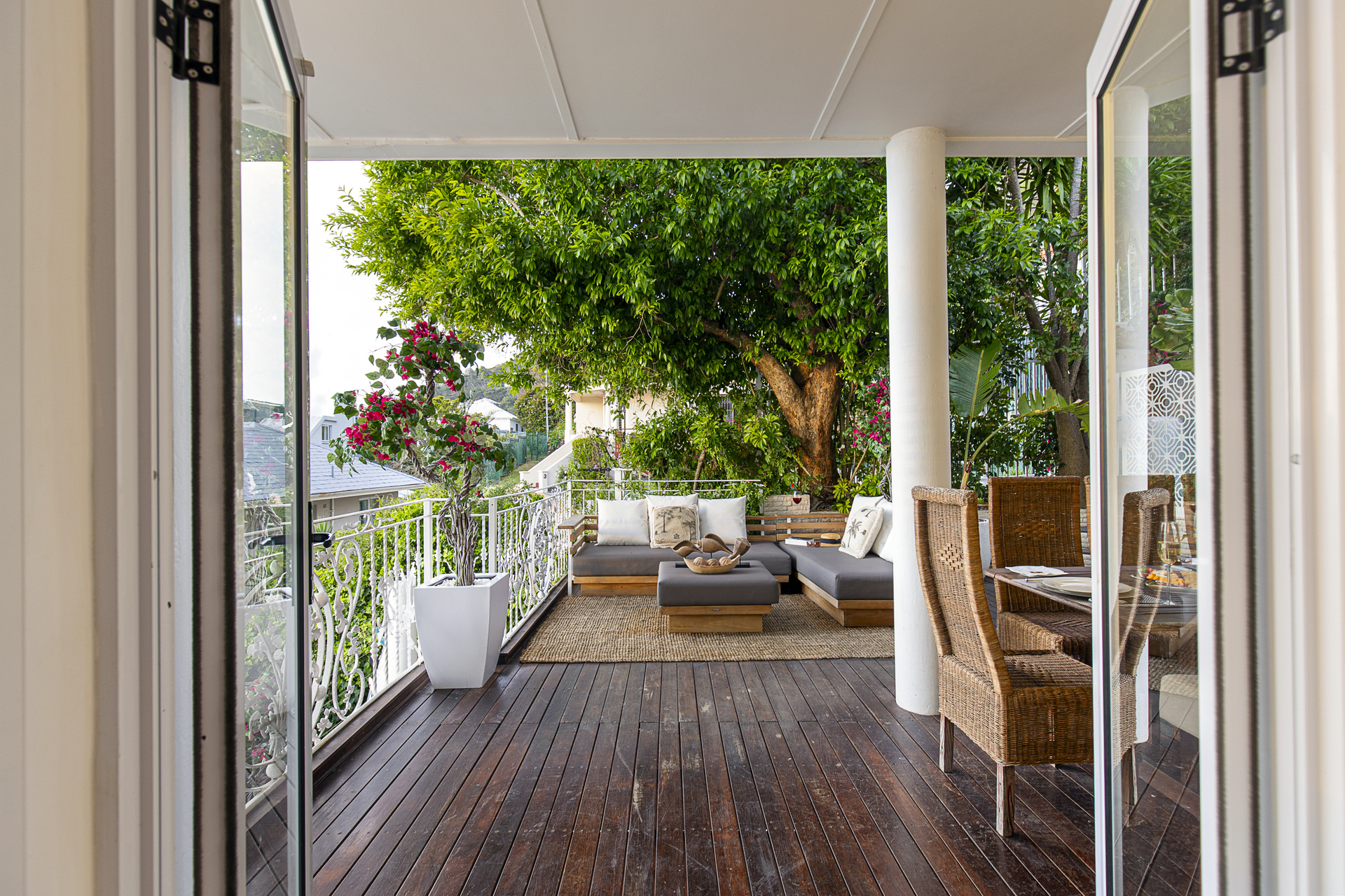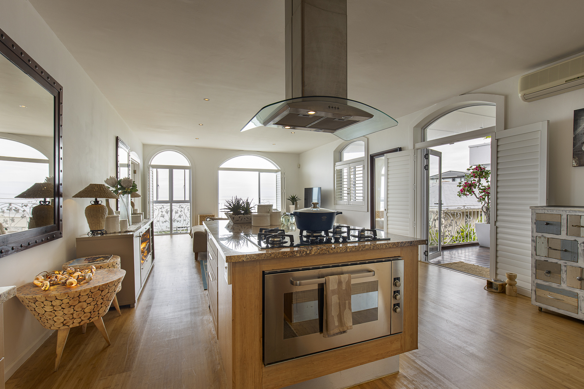 Step into a world of panoramic ocean views from the moment you arrive at this luxurious apartment. The spacious wooden-deck terrace leads you into a beautifully designed space, where indoor and outdoor living blend seamlessly within a charming private garden.