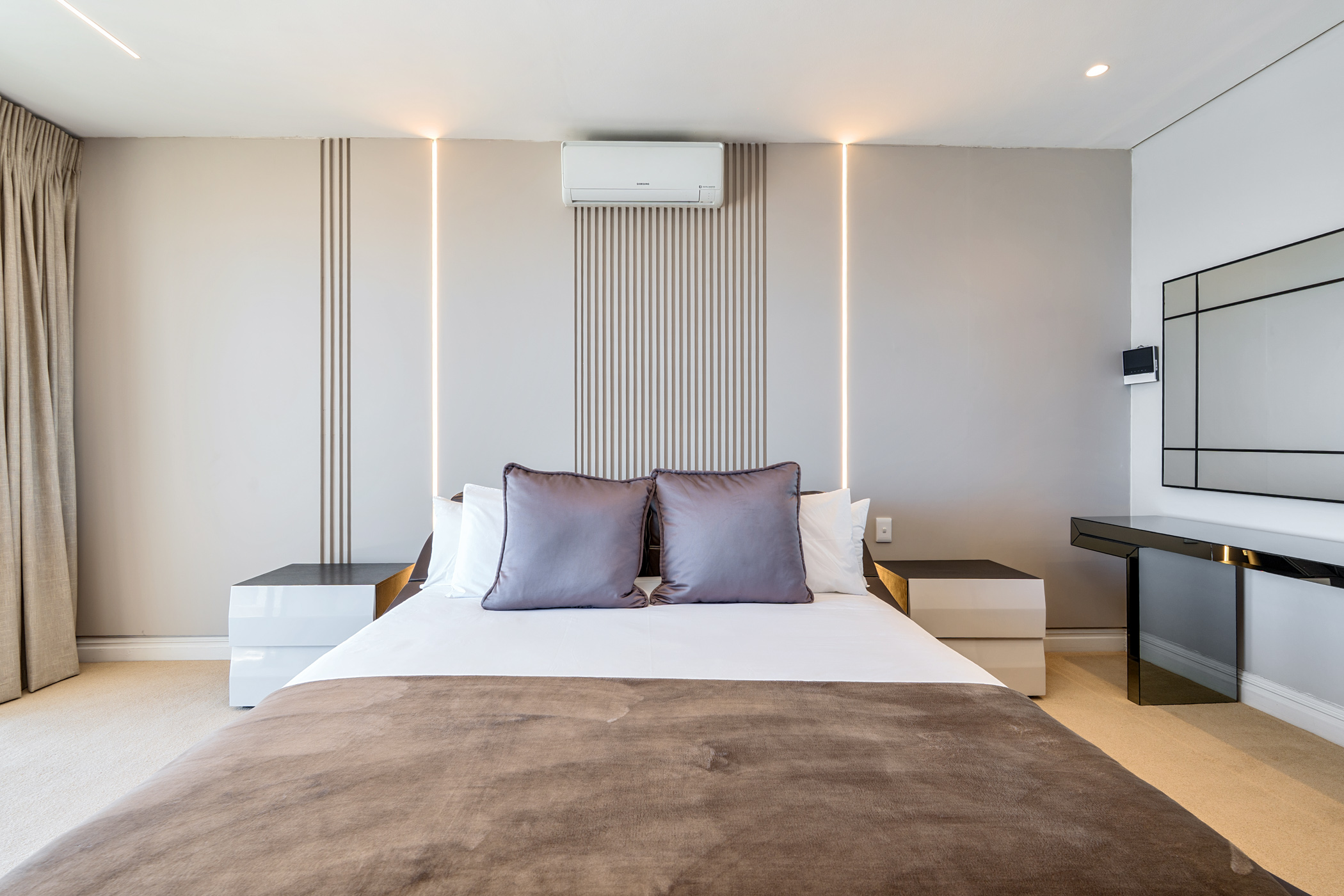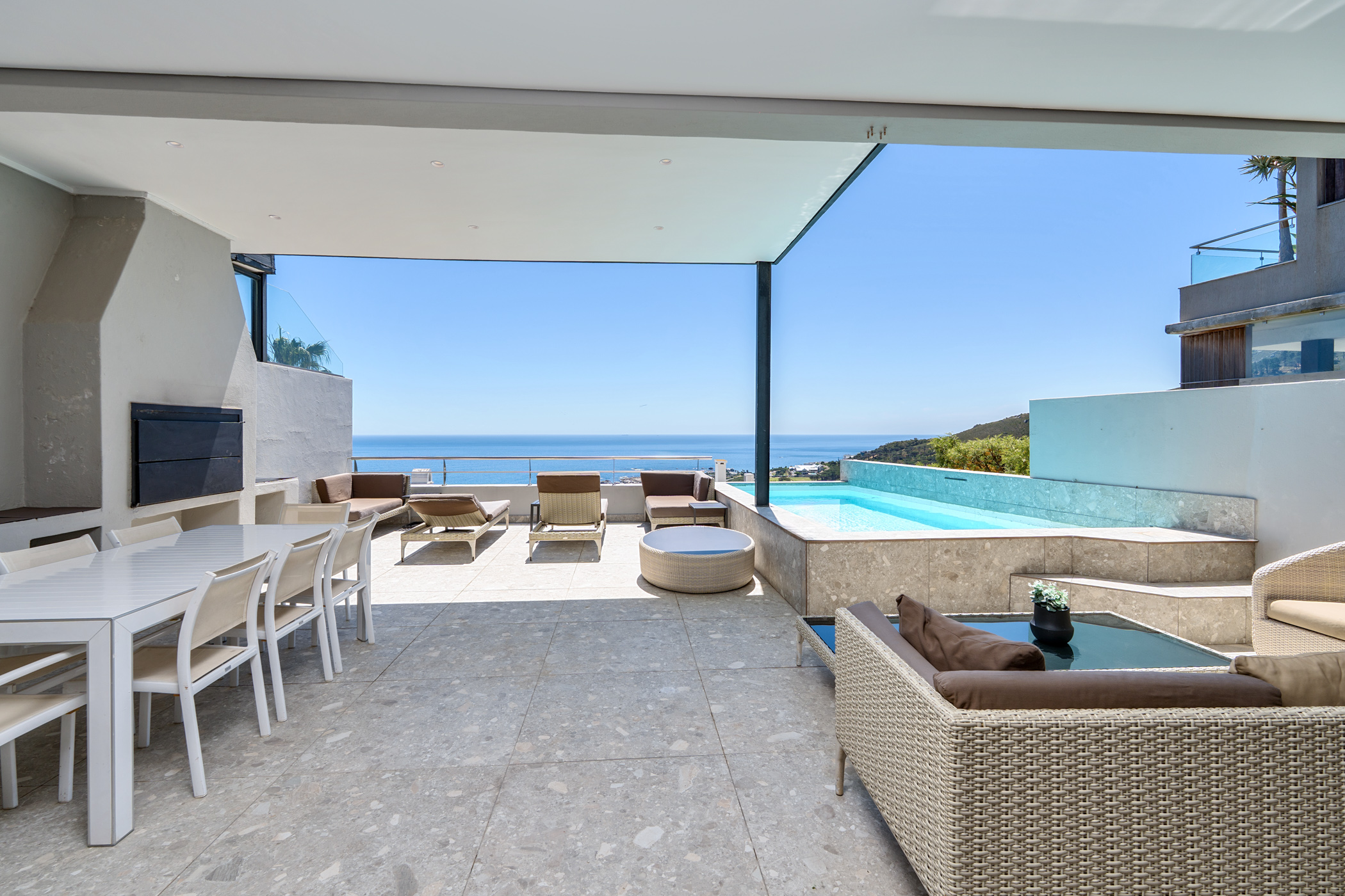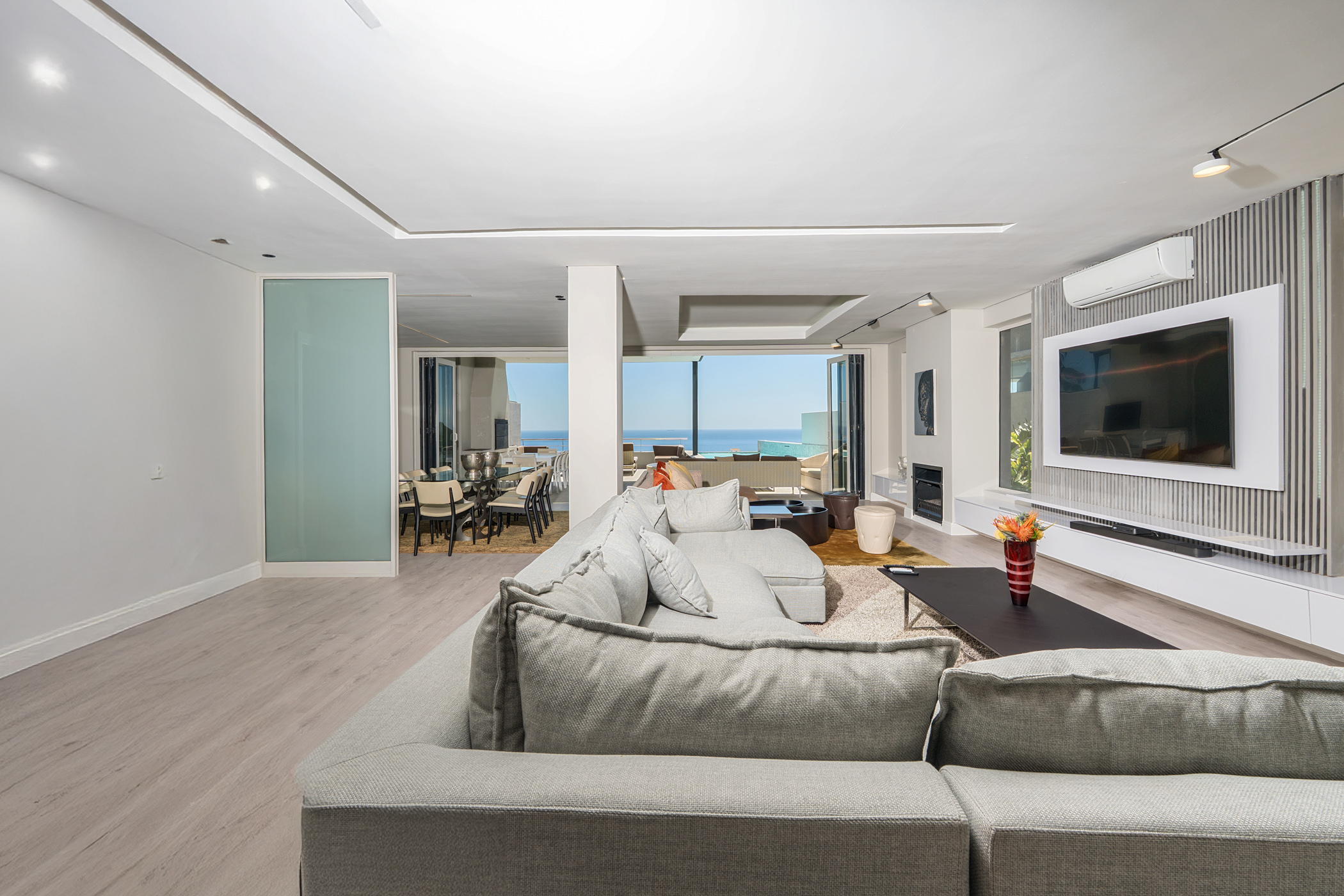 Located in upper Camps Bay, this 3-bedroom apartment offers uninterrupted sea views and seamless indoor-outdoor flow. All bedrooms are en-suite with built-in storage. The open-plan living space leads to a private pool and covered patio. Secure underground parking, high-speed Wi-Fi, and on-site caretaker. Bookings now open for Cape Town’s peak summer season.