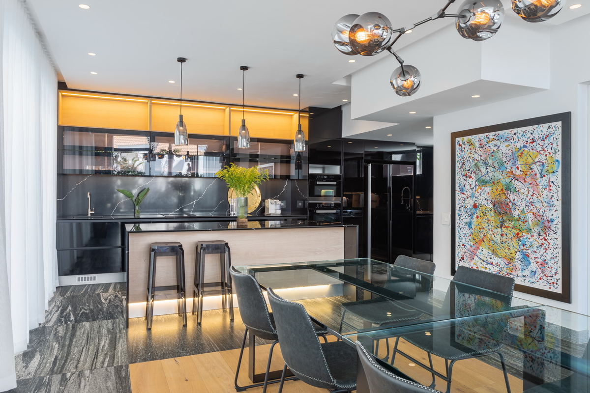 Just steps from the Atlantic Ocean, this multi-level retreat features three beautifully appointed en-suite bedrooms, a fully integrated Miele kitchen, and open-plan living spaces that spill out onto a private garden terrace with a pool and alfresco dining area. Clean lines, curated art, and premium finishes give the home a sense of stylish calm.